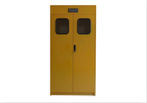 用于提高局部的排气通风,保护钢瓶(气瓶)不受柜子外面火灾以及保护周围物免受内部火灾的金属容器。气瓶柜内部有吹洗系统,报警器和排气孔,通常有一瓶位、二瓶位和三瓶位。
