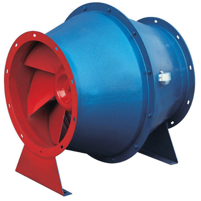 轴流风机其叶轮为轴流式风机的变形,采用鼓型风筒,从而改变气流主向达到斜流。其特点:在同机号相比之下,流量大于离心式风机:全压高于轴流式风机;体积小于离心式同机,具有高效运行区宽广、噪声低、占地少、安装方便等优点。该风机不影响管道布置和管道走向,最适宜于为直管道加压和送排风。对于空间狭小的机房,尤其显出它的结构紧凑的优越性。